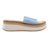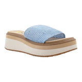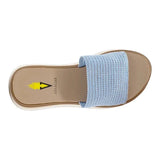 Experience comfort and style with the Volatile Portobello Woven Raffia Sandal. The elastic raffia material offers a secure and flexible fit, while the light blue color adds a touch of elegance. Perfect for any occasion, these sandals are a must-have for your summer wardrobe.