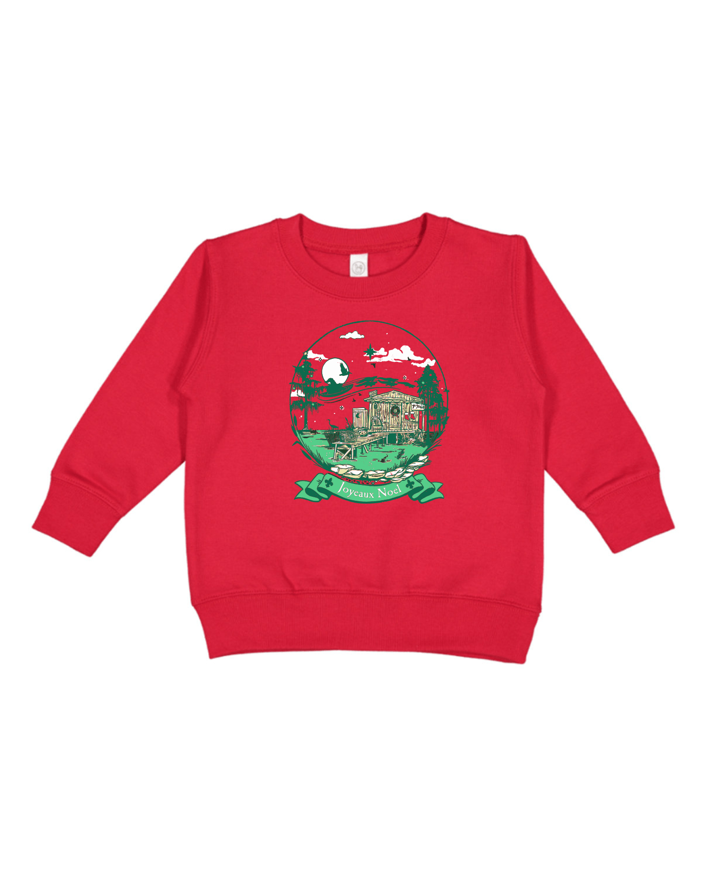 Get into the holiday spirit with our Whereable Art Joyeaux Noel Sweatshirt! This festive red sweatshirt features a joyful Joyeaux Noel and a playful print of Santa and his reindeer. Made for children of all ages, it's the perfect way to spread holiday cheer while staying warm and stylish.