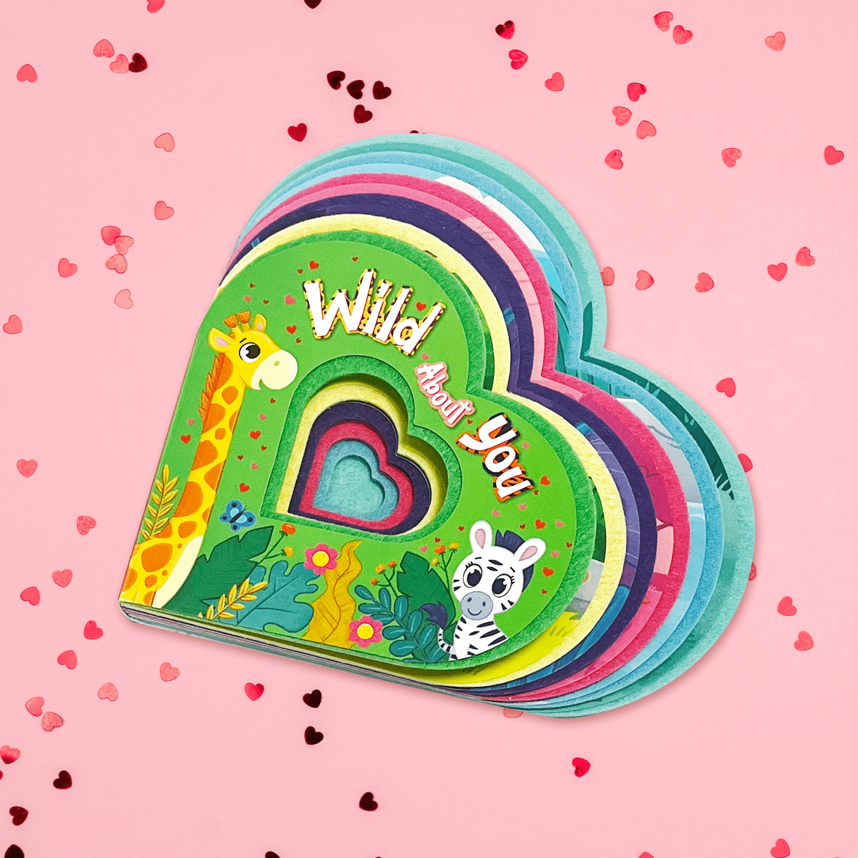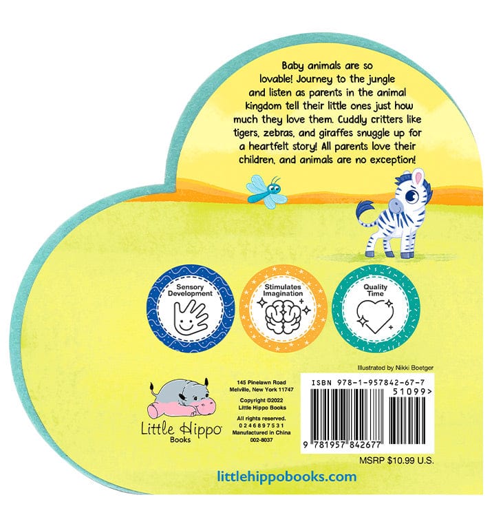 Wild About You is the perfect story for bedtime cuddles! Little ones will love the rhyming words and bright illustrations of beloved jungle animals. The book contains a heart-shaped cutout that gets smaller as you progress, providing interactive fun and tactile learning. Parents can rest assured that their little ones will settle into their routines with this sweet story about the love animals have for their offspring. Perfect for bedtime!