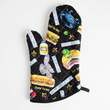 Youngberg & Co Inc black fabric design features New Orleans most iconic sandwich, the “Po-Boy”. Included in the quilted design are fried oyster, fried shrimp, roast beef and the famous Muffuletta. It features streets and neighborhoods of New Orleans.